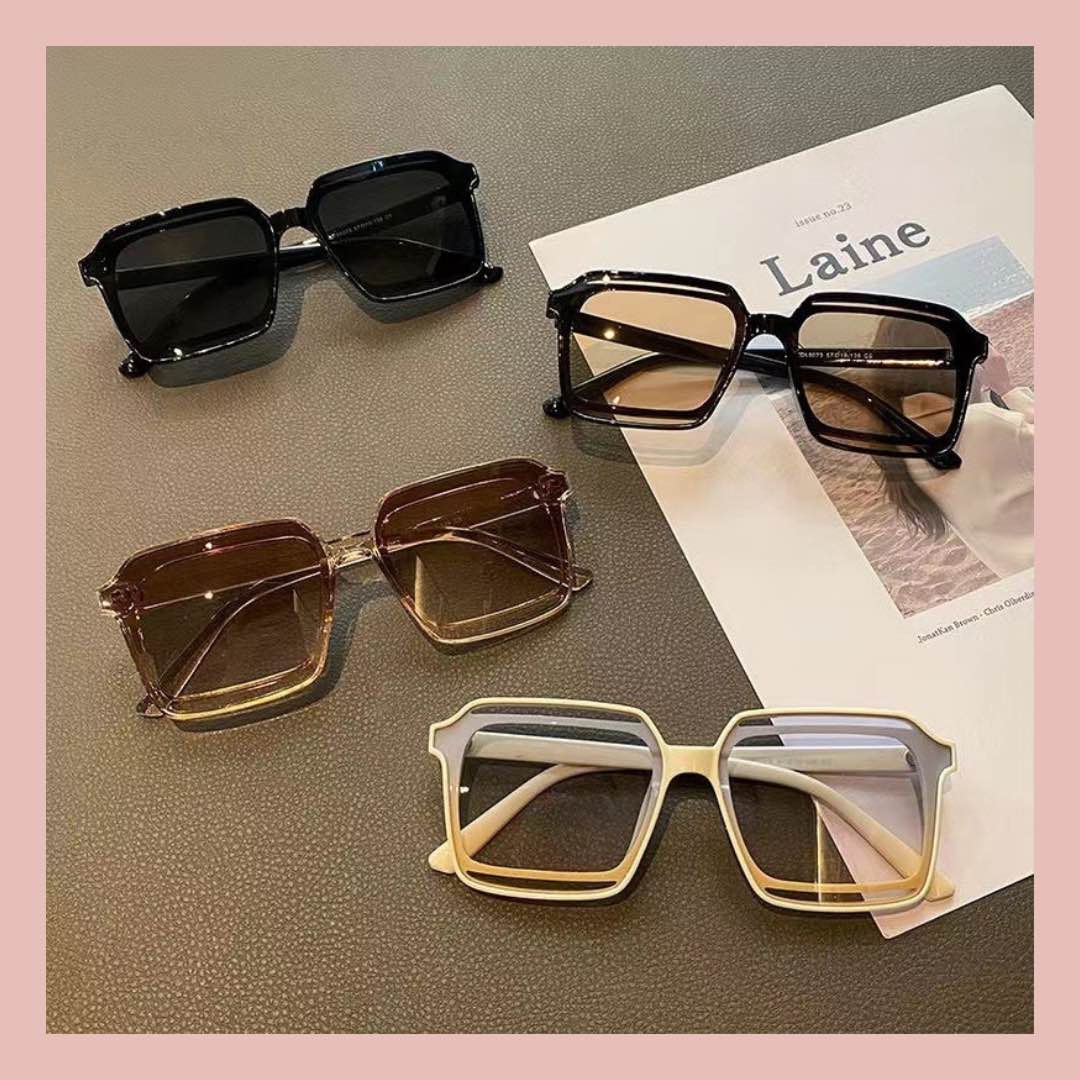 For You [Ready Stock] Stylish Unisex Square Frame Sunglasses Cermin Mata Hitam OOTD Cafe Hopping Sunglasses 太阳眼镜