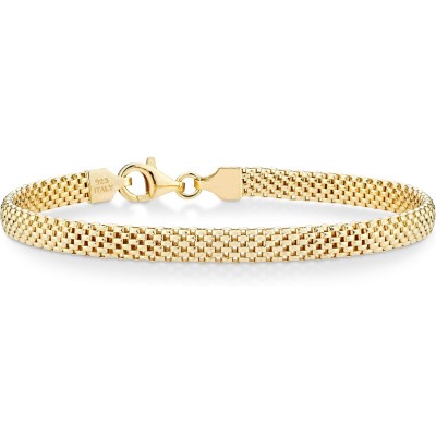 Miabella 18K Gold Over Sterling Silver Italian 5mm Mesh Link Chain Bracelet for Women, 925 Made in Italy