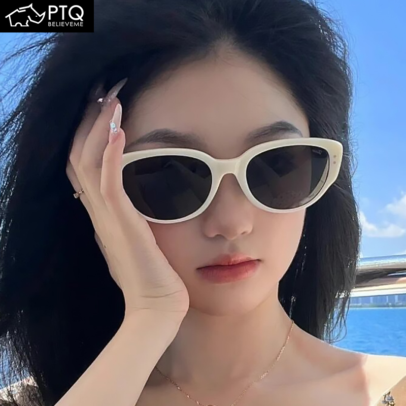 Sunglasses Women 2023 New Fashion Glasses White Retro Cat Eye Glasses White Frame Flat Glasses PTQ