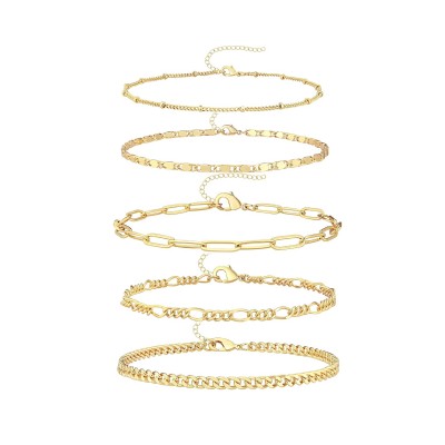 Ankle Bracelets for Women, 14k Gold Jewelry Set Waterproof Layered Cuban Figaro