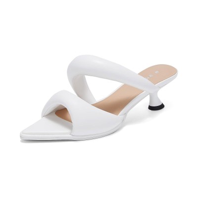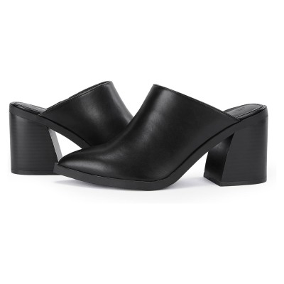 JeimPoey Womens Chunky Heels Mules Pointed Closed Toe Heeled Sandals Backless Stacked Block Heel Slip-on Booties