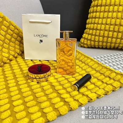 三件套Dior迪奥口红Lancome香水75ml圣罗兰YSL红丝气垫10号粉底液