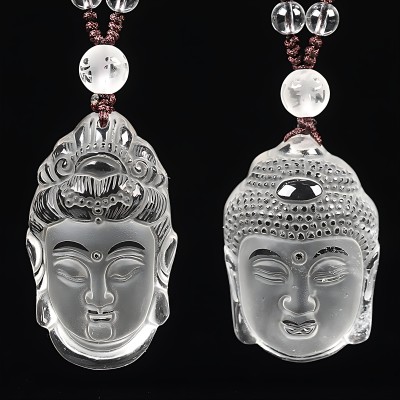 Natural white crystal Buddha head pendant Shakyamuni Buddha statue