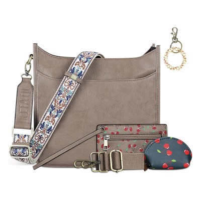 KITATU Crossbody Bags for Women Hobo Handbags Cherry's Wallet Set Vegan Leather Shoulder Purse 2 Adjustable Guitar Straps
