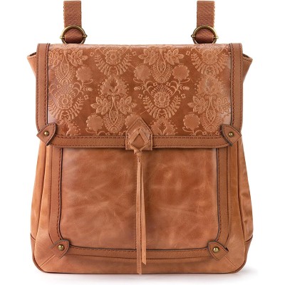 The Sak Ventura Backpack in Leather, Adjustable Convertible Strap, Tobacco Floral Emboss