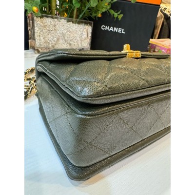 Chanel Quilted Flap Bag in Olive Green, 99% New, 22K Chip Version
