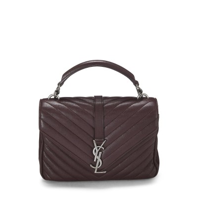 YVES SAINT LAURENT Pre-Loved Burgundy Chevron Leather College Medium, Burgundy 23236