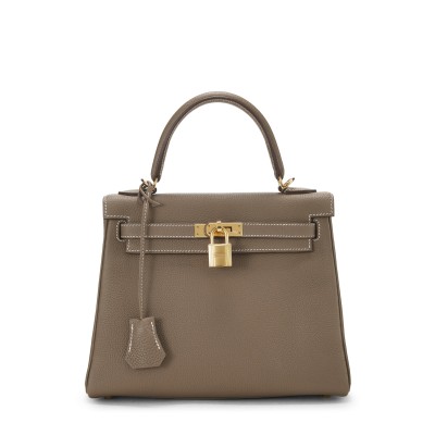 Hermes Hermès, Pre-Loved Etoupe Evergrain Kelly Retourne 25, Etoupe 15156