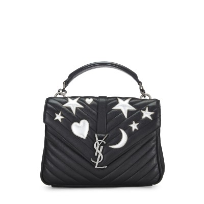 YVES SAINT LAURENT Pre-Loved Black Chevron Leather Embroidered Patches College Medium, Black 2621