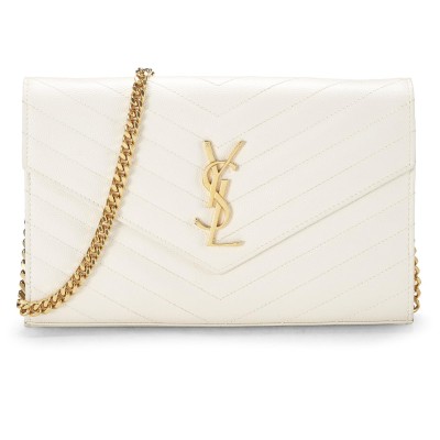 YVES SAINT LAURENT Pre-Loved White Grained Calfskin Envelope Wallet-On-Chain (WOC), White 3446