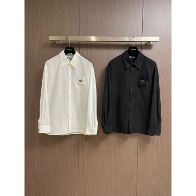 PRADA 24SS Autumn New Pocket Steel Label Long Sleeve Shirt