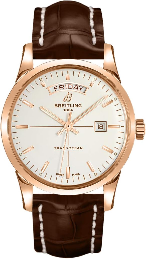 Breitling Solid Rose Gold Transocean Day Date Mens Watch
