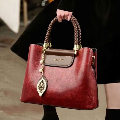 New 2025 genuine leather high-end custom large capacity commuter shoulder handbag