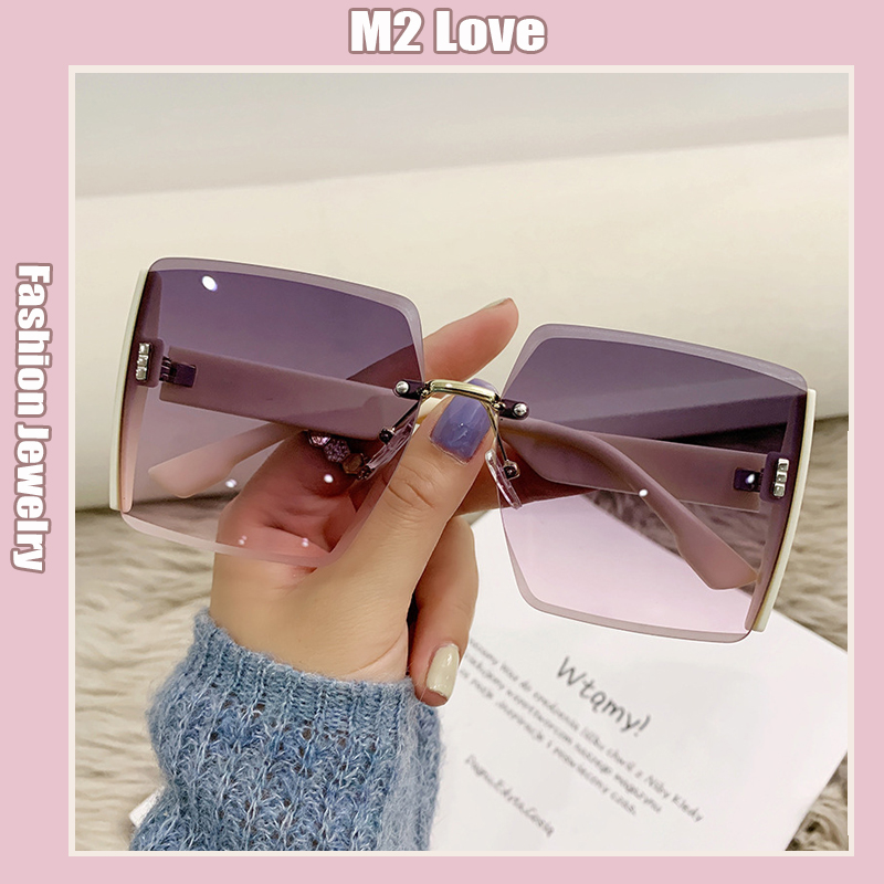 Korean Fashion Sunglasses New Rimless Glasses Square Large Frame Sunglasses Unisex Spek Mata
