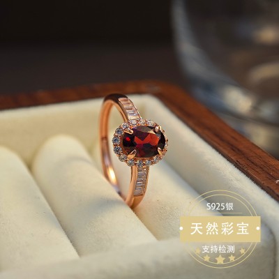 Light Luxury Natural Colorful Garnet Ring Natural Crystal Ring 925 Silver Ring for Women