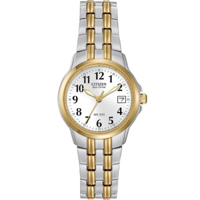 Citizen Women's Eco-Drive Dress Classic Two Tone Gold Stainless Steel Watch, Easy to Read, White Dial, 26mm (Model: EW1544-53A)