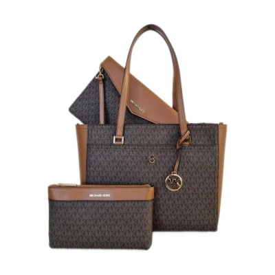 Michael Kors Womens Maisie 3 In 1 Bundle Large Top Zip Tote Crossbody Pouch Wristlet MK Signature
