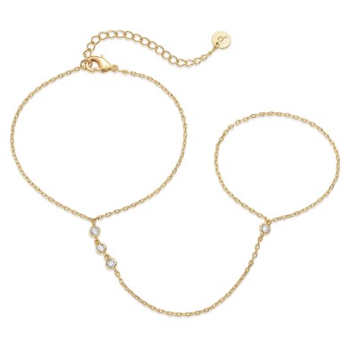 PAVOI 14K Yellow Gold Plated Hand Chains Bracelet for Women | Dainty Cubic Zirconia Bracelet and Ring Chain Body Jewelry