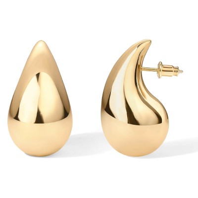 PAVOI 14K Gold Plated 925 Sterling Silver Post Teardrop Chunky Hoop Earrings