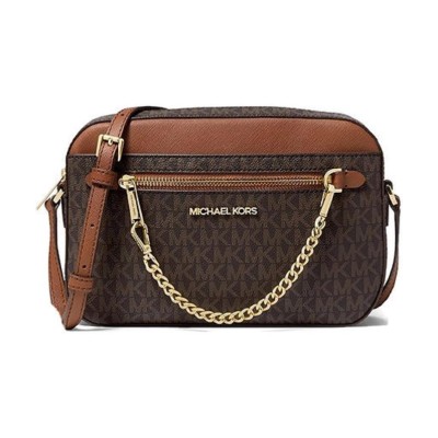 Michael Kors Jet Set Large Leather Crossbody Bag (Brown Signature/Gold HW)