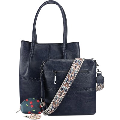 KITATU Top Tote Handbags Shoulder Bags for Women Satchel Tote with Crossbody Purse and Wallet Vegan Leather Purse Set 3pcs