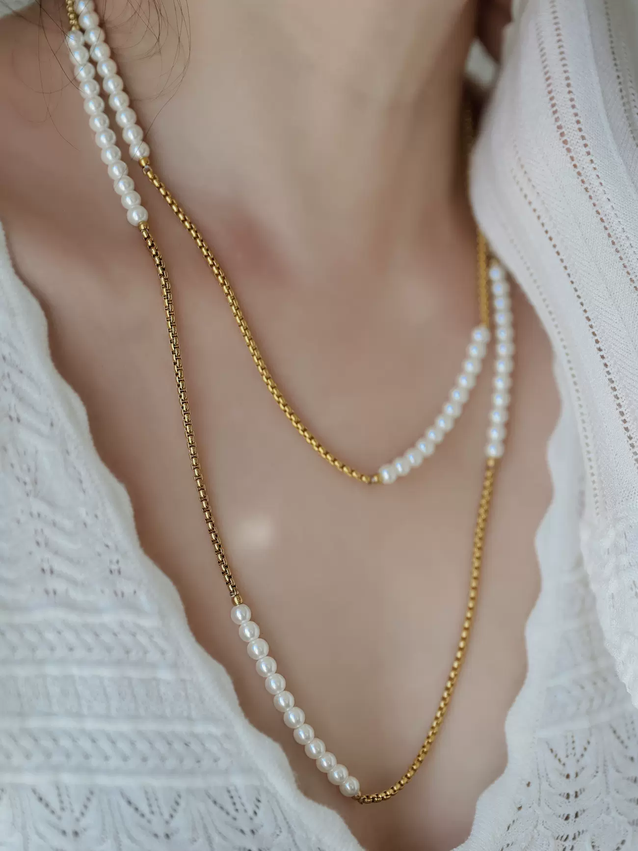 No fading ~ Imported Austrian pearl interval long necklace sweater chain high-end luxury