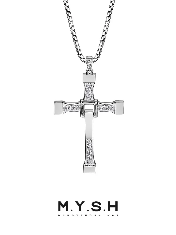 Sterling silver cross necklace men's pendant trend speed and passion same style high-end European