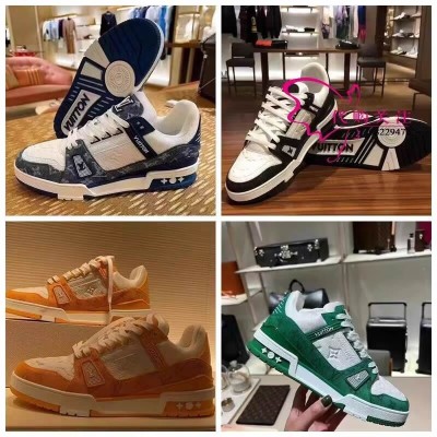 LV men's and women's shoes, sneakers, denim and leather print, low top NO.22