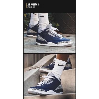 Air Jordan 3 blue white blue crackle pattern men's basketball shoes CT8532-145
