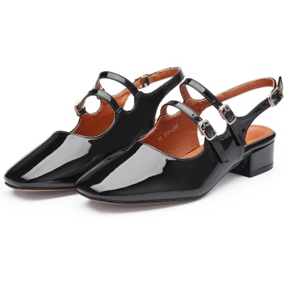 Womens Mary Janes Pumps Chunky Low Heel Slingback Adjustable Ankle Buckle Slip On Sandals Double Back Buckles