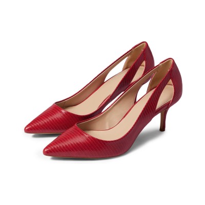Women's Closed Point Toe Pumps Slip on Low Kitten Heels Textured Cut Out Fashion Prom Party Dress Shoes