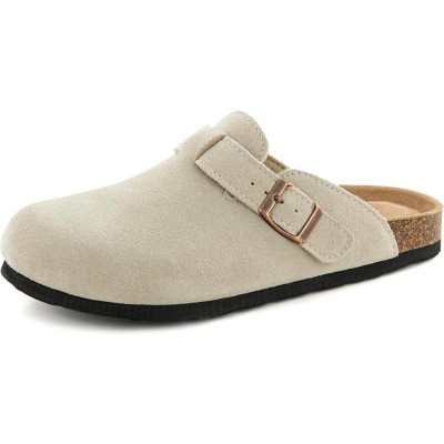 Luna Women’s Clogs Suede Cork Footbed Sandals Adjustable Buckle Slip On Leather Mules Comfort House Shoes Indoor Outdoor