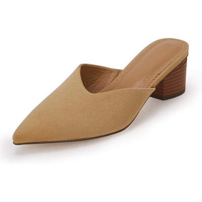 Coutgo Womens Pointed Toe V Cut Mules Chunky Block Heel Slip On Clogs Fashion Office Slides Shoes