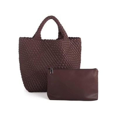 Woven Beach Tote Bag, Women Macaron Soft Leather Weave Handbag with Purse Top-handle Handbag for Work Travel