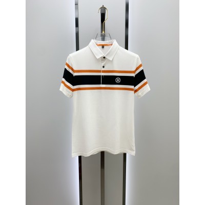 Hermes 2024SS Summer New Letter Logo Men's Polo Collar Shirt