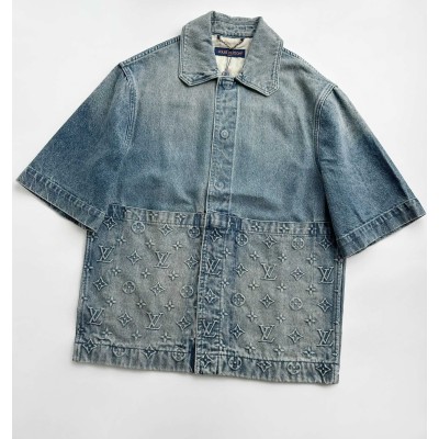 Louis Vuitton Spring/Summer New Relief Imprint Printed Small Flower Logo Pattern Workwear Short Sleeve Shirt